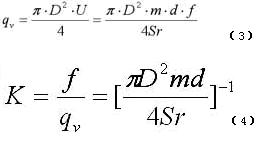 式中,m為旋渦發生體兩側弓形面積與管道橫截面面積之比;D為表體通徑;d為旋渦發生體迎面寬度;f為旋渦的發生頻率;U1為旋渦發生體兩側平均流速;Sr為斯特勞哈爾數;U為被測介質流的平均速度。