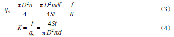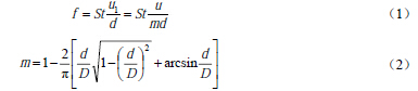 1.引言 渦街流量計(或稱旋渦流量計)是一種基于流體振蕩原理的新型速度式流量儀表。它的輸出信號是與流量成正比的脈沖頻率信號或標準電流信號,可遠距離傳輸,并且輸出信號僅與流量有關,不受流體的溫度、壓力、成分、粘度和密度的影響。它具有量程比寬,結構簡單,無運動件,檢測元件不接觸被測流體,具有測量精度好、應用范圍廣、使用壽命長等特點。因此,渦街流量計自20世紀60年代末誕生以來,發展異常迅速,許多研究者進行了大量的工作,開發出了眾多類型的渦街流量計,并大量生產投放市場,像這樣在短短幾年時間內就達到從實驗室樣機到批量生產過程的流量計還是僅有的。 然而,在經歷了20世紀80~90年代的“渦街熱”以后,渦街流量計的發展放慢了步伐。由于對這種新型儀表的生產、設計、選型和應用方面的經驗不足,面對各行各業千差萬別的現場和測量對象,有些問題逐步暴露出來,如安裝條件和方式對測量的影響等。對于安裝條件(即各種使用條件下所必須的直管段長度)的要求,不同儀表廠家都會給出一個比較合理的建議值。但是,對于安裝方式(即流量計水平安裝或垂直安裝)給渦街流量計造成的影響,一般都沒有涉及。本文通過相同條件下的實驗研究,定量地討論和比較了水平、垂直兩種安裝方式對渦街流量計測量的影響。 2.渦街流量計測量原理 在流體中垂直于流向插入一根非流線型柱狀物體(即旋渦發生體),當流速大于一定值時,在柱狀物兩側將產生兩排旋轉方向相反、交替出現的非對稱的旋渦列(即卡門渦街),如圖1所示,通過檢測渦街產生的頻率,根據有關的關系式得到流體的流量。 設旋渦的發生頻率為f,被測介質來流的平均速度為u,旋渦發生體迎面寬度為d,管道內徑為D,根據卡門渦街原理,有如下關系式: 式中u1為旋渦發生體兩側的平均流速,m/s;St為斯特勞哈爾數,量綱為1;m為旋渦發生體兩側弓形面積與管道橫截面面積之比,量綱為1。 管道內流體的體積流量qv為: 式中K為渦街流量計的儀表系數,Hz/(m3/h)。 式(3)就是渦街流量計測量的基本關系式,其中K除與旋渦發生體、管道的幾何尺寸有關外,還與斯特勞哈爾數有關。斯特勞哈爾數為無量綱參數,它與旋渦發生體形狀及雷諾數有關,在ReD = 2×104 ~ 7×106范圍內,St可視為常數,這是儀表正常工作范圍。同時可以看到,渦街流量計輸出的脈沖頻率信號不受流體物性和組分變化的影響,即儀表系數在一定雷諾數范圍內僅與旋渦發生體及管道的形狀尺寸等有關。 3. 渦街流量計的安裝方式 在工程實際應用中,渦街流量計通常有如圖2所示的幾種安裝方式[10],其中(a)、(b)、(c)三種方式都屬于水平安裝;(d)則為渦街流量計的垂直安裝。對不同的流體應采用不同的安裝方式。普通液體、氣體、含水量液體的氣體、低溫氣體和液體、含微量固體顆粒的液體和氣體等可采用(a)、(c)、(d)方式安裝;高溫液體、高溫氣體、蒸汽可采用(b)、(c)、(d)方式安裝;濕飽和蒸汽可采用(a)、(c)、(d)方式安裝;液-氣(含微量氣體)、液-固(含微量固體)和液-液兩項流中,如果氣、固相不超出可測量范圍,建議首先采用(d)方式安裝。 4. 實驗及結果討論 4.1 實驗裝置與過程 實驗裝置結構如圖3所示,水穩壓罐為管路提供恒定的水壓,使實驗時流量穩定,水流量的大小由調節閥來調節,流量范圍為2~20 m3/h。電磁流量計作為標準流量表給出進入實驗段的水的標準流量值,精度為0.5%。渦街流量計分別按照水平和垂直兩種方式安裝在實驗管路中,它們都具有足夠長的前、后直管段長度,并且其它安裝條件都嚴格按照規定的要求。渦街流量計的信號通過示波器采集,采樣頻率選用1000 Hz,每組數據包含2500點。 4. 2 實驗結果與分析 分別對在水平和垂直兩種安裝方式時測得的渦街信號進行快速傅里葉變換(FFT),可以得到渦街頻率值,圖4給出了渦街頻率與流量之間的關系。從圖中可以看出,兩者之間的差別很小。再分別對測得的渦街率與流量做零截距最小二乘擬合,得到水平、垂直安裝的渦街流量計儀表系數分別為2.5202 Hz/(m3/h)和2.5198 Hz/(m3/h),相對誤差小于0.02%。可見,在安裝方式對渦街流量計的測量影響很小,可以忽略。 為了進一步研究渦街流量計安裝方式的影響,本文還比較了在水平和垂直兩種方式下的渦街信號的幅度。圖5給出了渦街信號幅度與流量之間的關系,可以看出信號幅度都與流量成近似二次方關系,在相同流量下,信號幅度基本上相等,這說明渦街流量計安裝方式對其信號幅度影響很小,也即旋渦的能量(正比于幅度的平方)幾乎不受影響。但是,仔細比較可以發現,渦街流量計水平安裝時的信號幅度略大于垂直安裝的情況,這里可定性地理解為,當渦街流量計垂直安裝時部分旋渦能量因為克服重力而耗散,使得渦街流量計傳感器感測到的渦街能量變少,從而造成信號幅度減小。