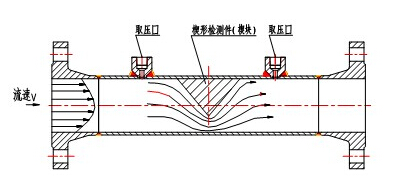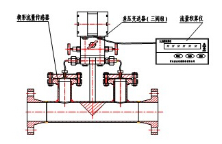 一體化智能型楔形流量計(jì)流量傳感器的檢測件是楔形孔板,它是一塊V形節(jié)流件,它的圓形頂角朝下,這樣有利于含懸浮顆粒(粉塵、泥沙及其它固體顆粒)流體和高粘度液體流過時(shí)在節(jié)流件上游側(cè)不會(huì)產(chǎn)生滯流,也不會(huì)在節(jié)流體上、下游側(cè)發(fā)生固體顆;蛘吵砦锏姆e存,從而確保楔形流量傳感器長期運(yùn)行穩(wěn)定性:±0.1FS%Y,這樣高的長期運(yùn)行精度在流量測量領(lǐng)域是迄今少見的。楔形流量傳感器的結(jié)構(gòu)如圖1所示。